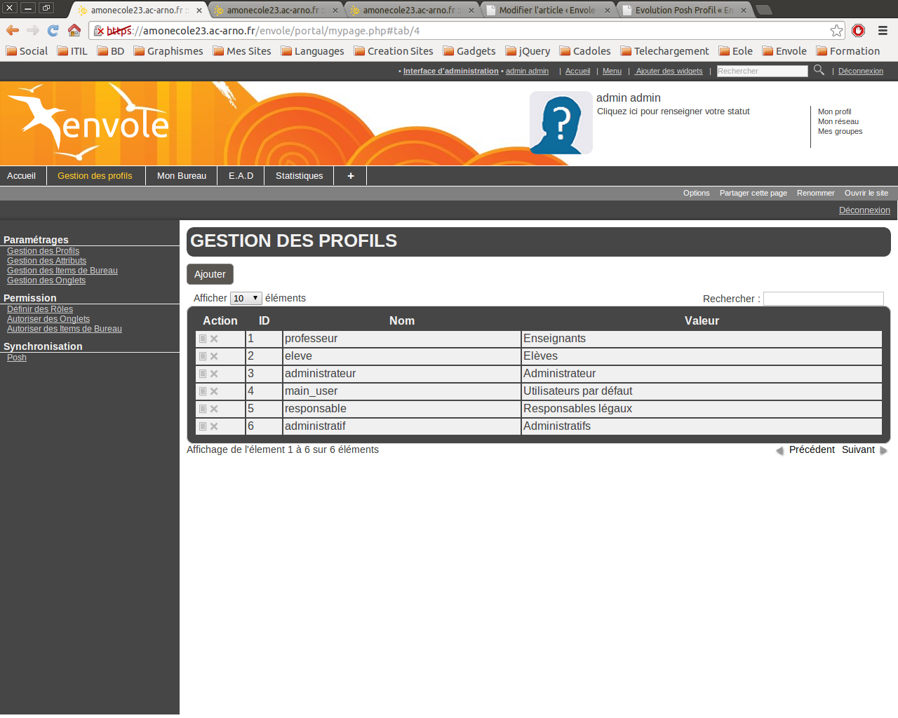 Liste des différents profils possible sur l’envole