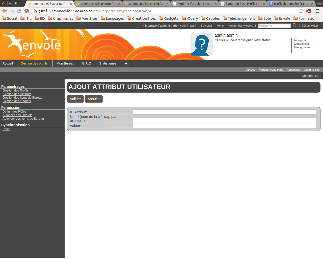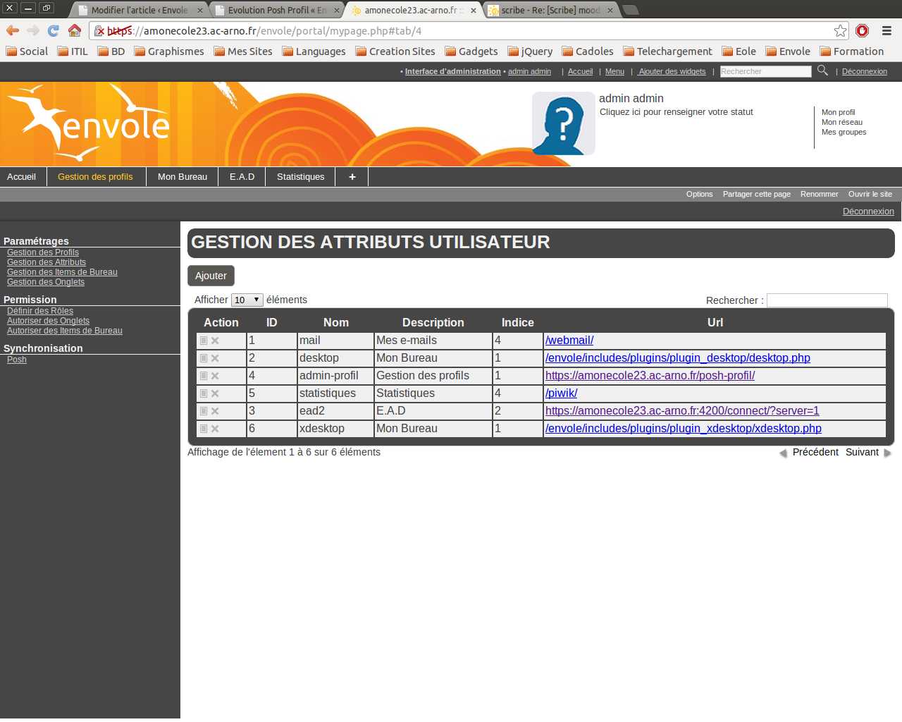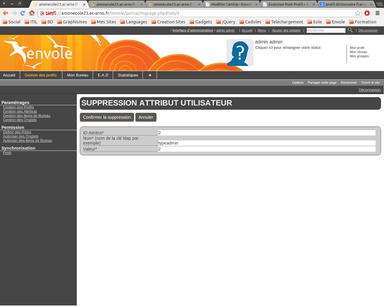 Par exemple un enseignant dans la copie d’écran ci-dessous aura un attribut “typeadmin = 0 OU typeadmin = 2”
