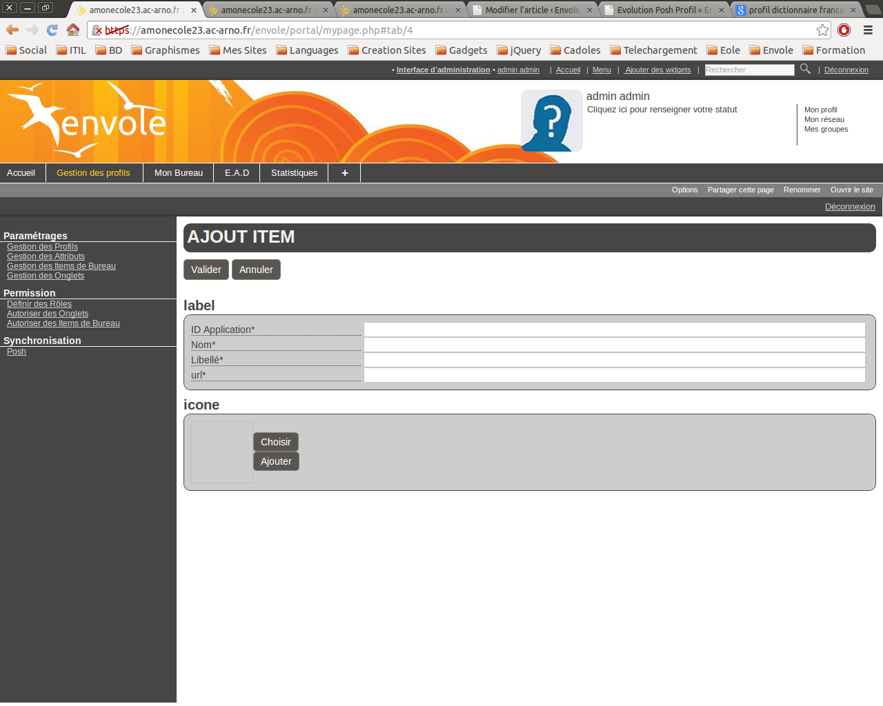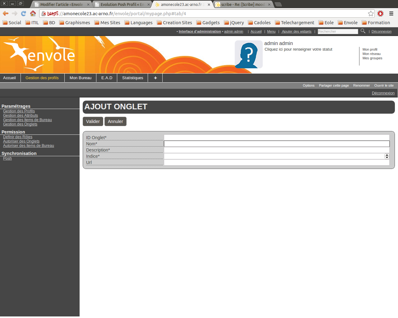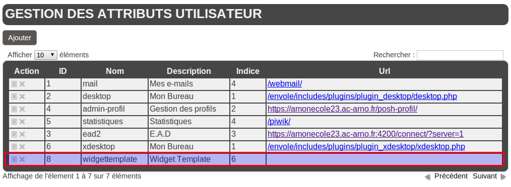 – L’Admin ajoute un onglet de type widget à son environnement