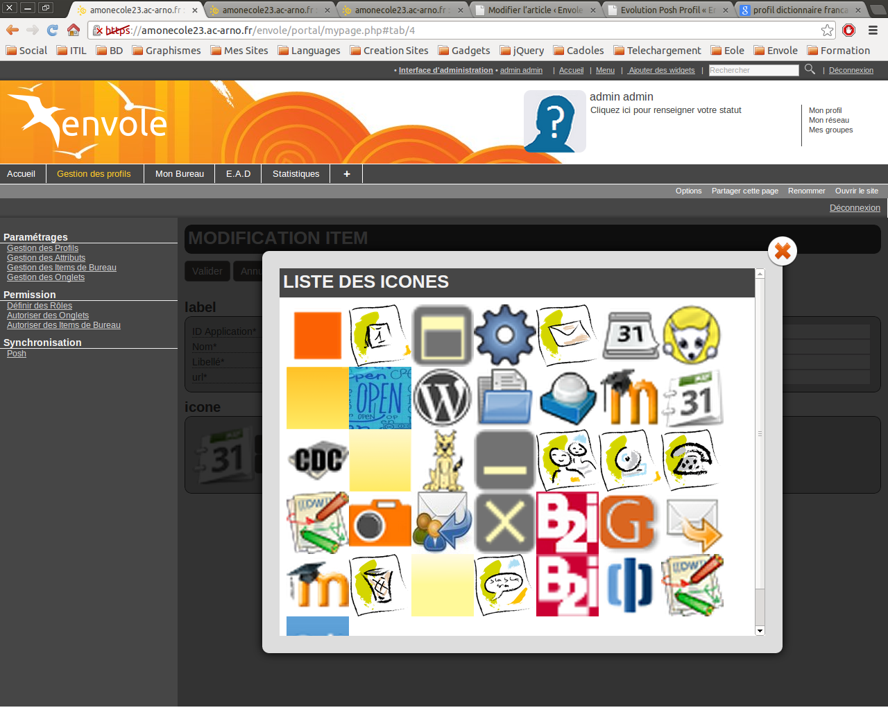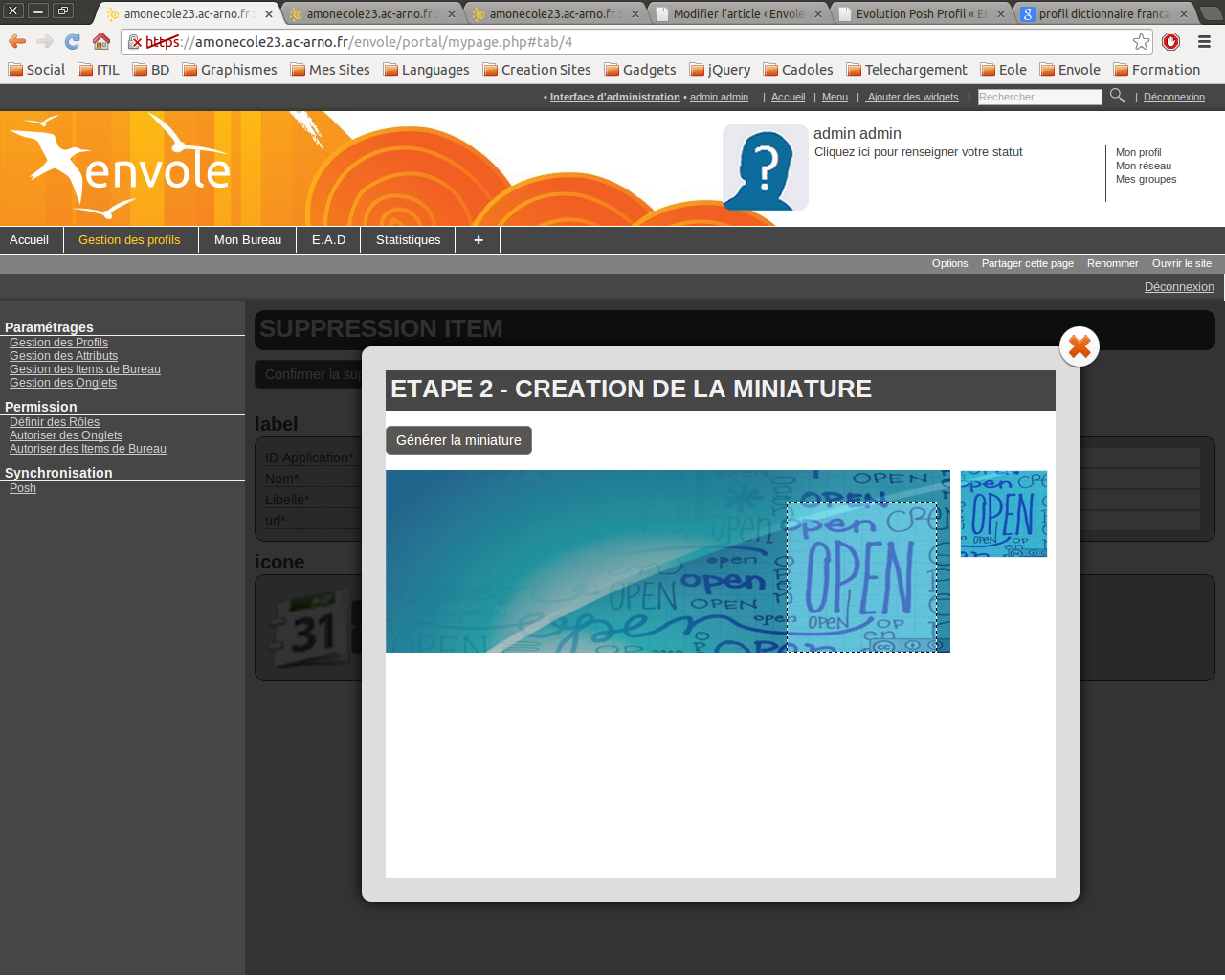 Le plugin posh “Plugins-Thumb” permet la création des onglets en fonction des profils de l’utilisateur connecté.
