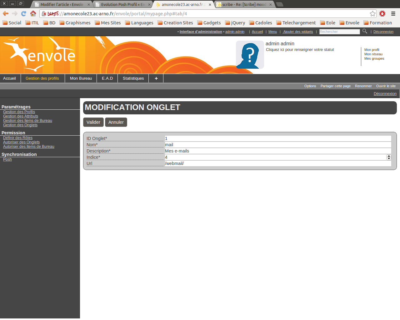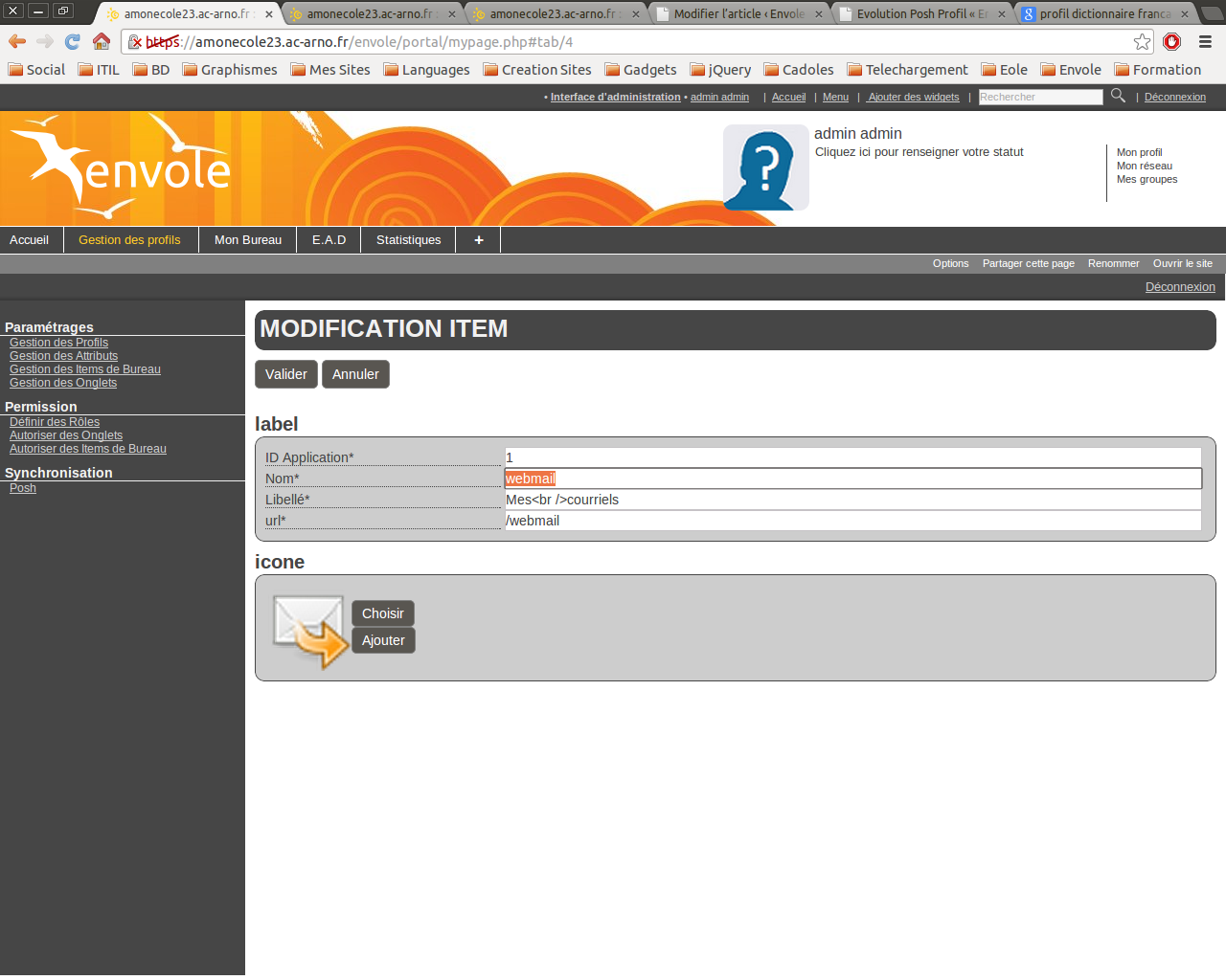 – La modification du label / de l’url / de l’indice dans posh-profil est bien reportée dans posh