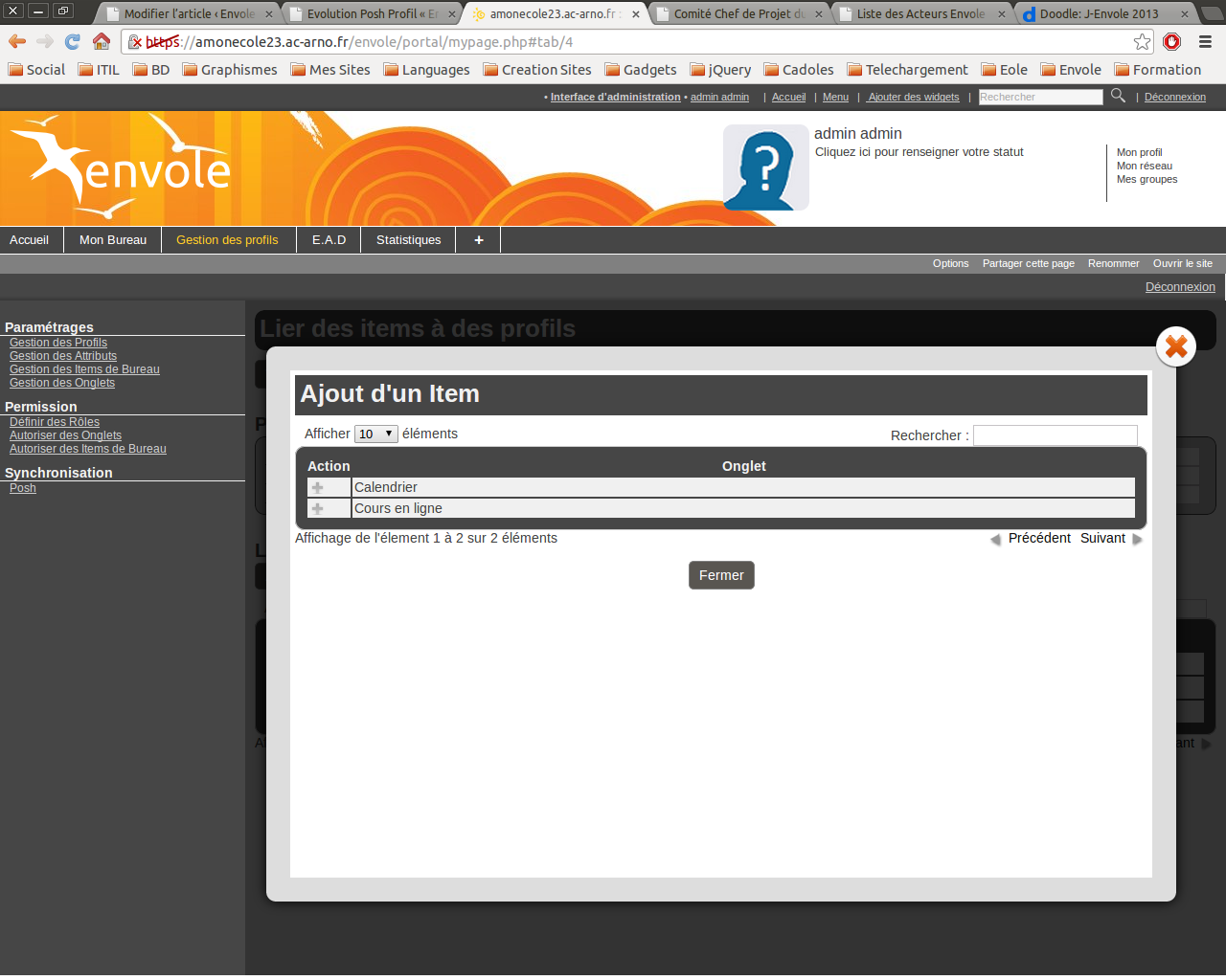 Puis dans la gestion des profils on voit bien l’onglet s’ajouter à la liste des onglets partageables