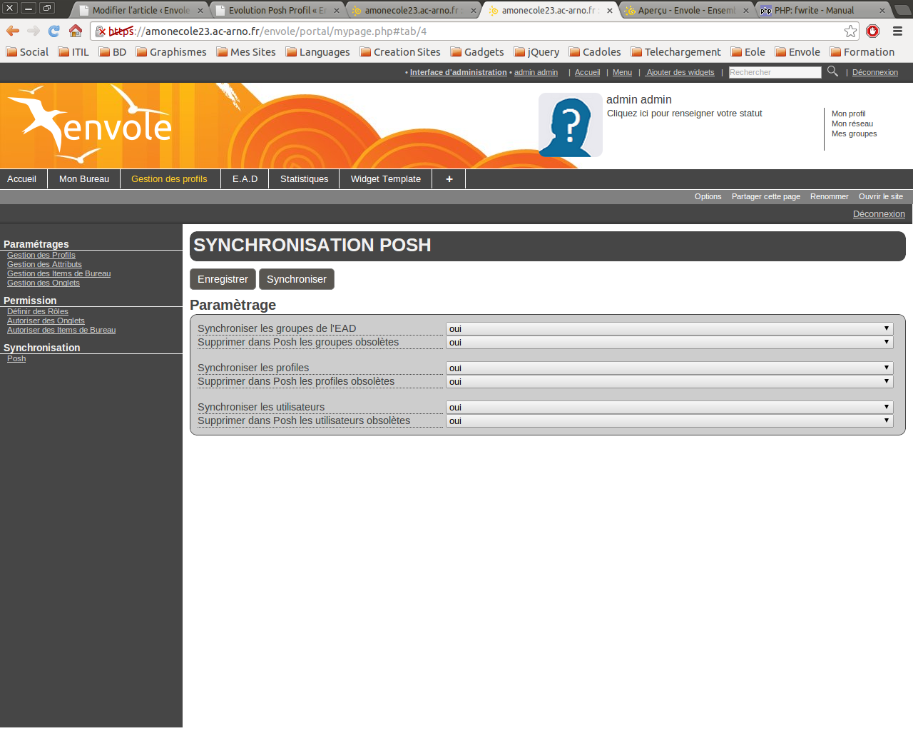 Après synchronisation, il sera possible d’observer dans l’administration de posh.