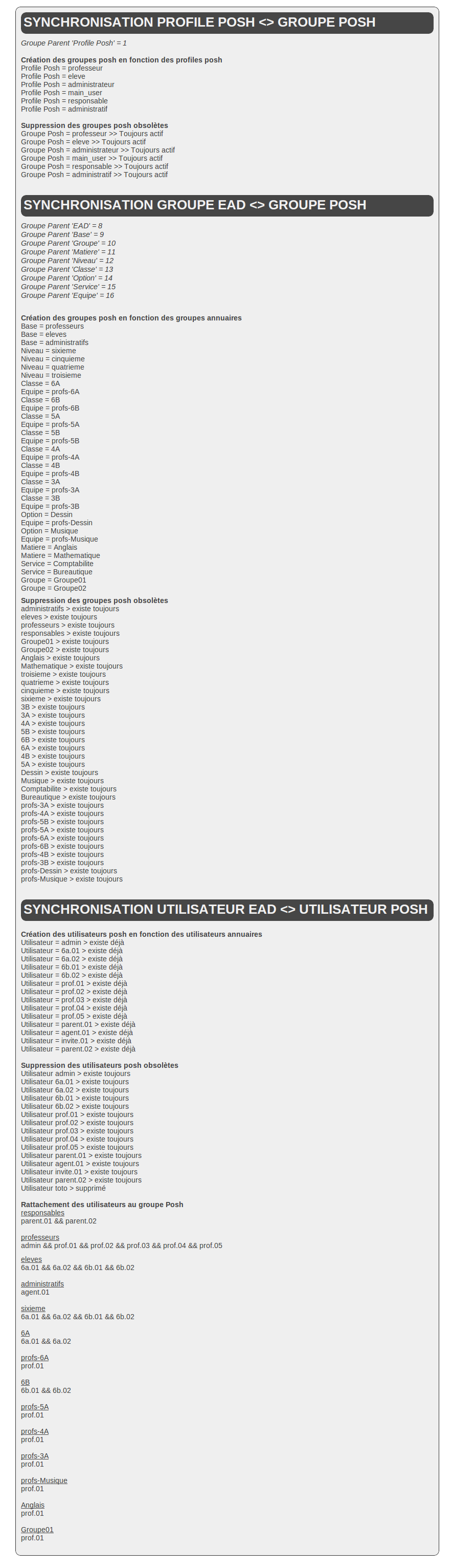 Le groupe EAD sera à jour des utilisateurs alors celui de Posh Profil non (se remplira au fur et à mesure des connexions utilisateurs)