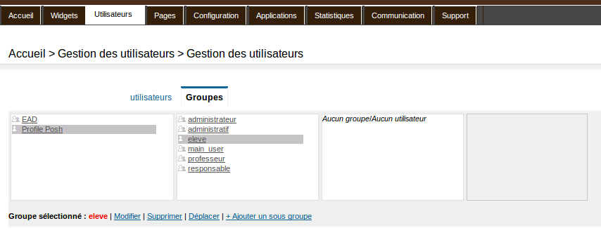 On peut y observer que le rattachement des utilisateurs ne se fait que sur les groupes EAD et nons sur les Profils. En effet il est impossible de le faire pour les profils en amont de la connexion de l’utilisateur.