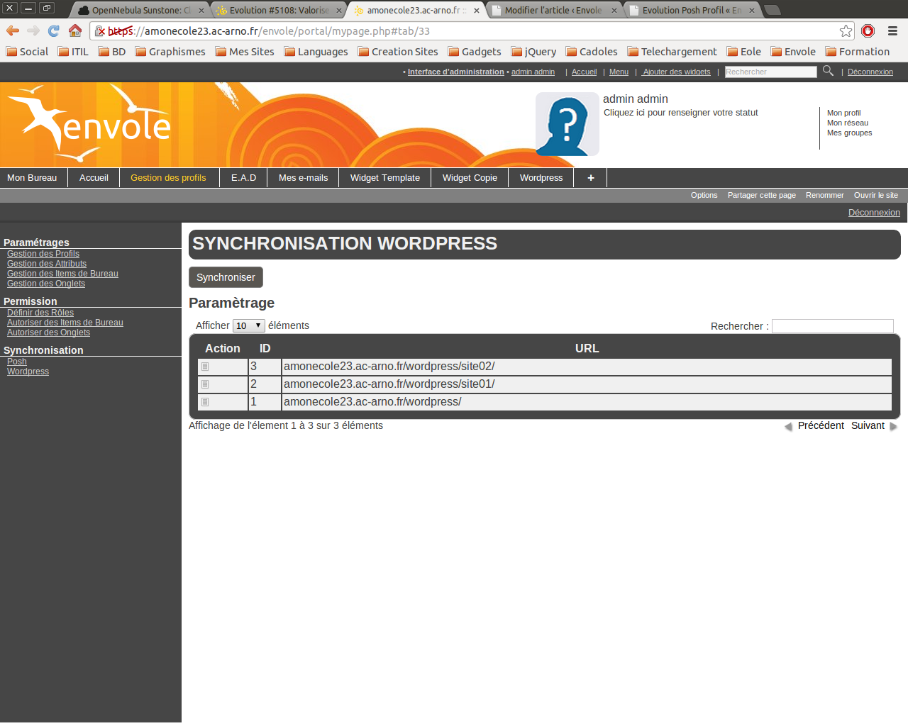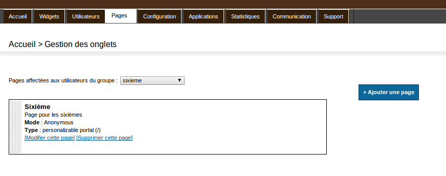 – Quand l’administrateur altère la page widget servant de template à un onglet associé à un profil, les modifications sont apportées aux pages des utilisateurs.